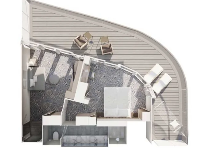 | JBBO - Junior Suite s balkónom B 26 m² + balkón 7 m² so stoličkami a podnožkami. 8-12. paluba. Max 4 osoby. Výhody Junior Suite. | 5 758 € 5 758 € za osobu |